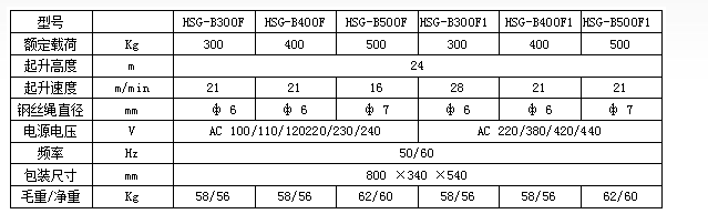 HSG-B500F1推式微型電動葫蘆參數(shù)表: